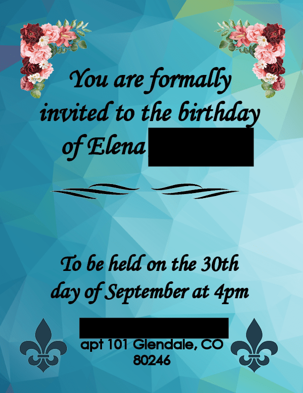 This is a birthday invitation for the same birthday the banner was for. This invitation is pointed at Gen Z women.
